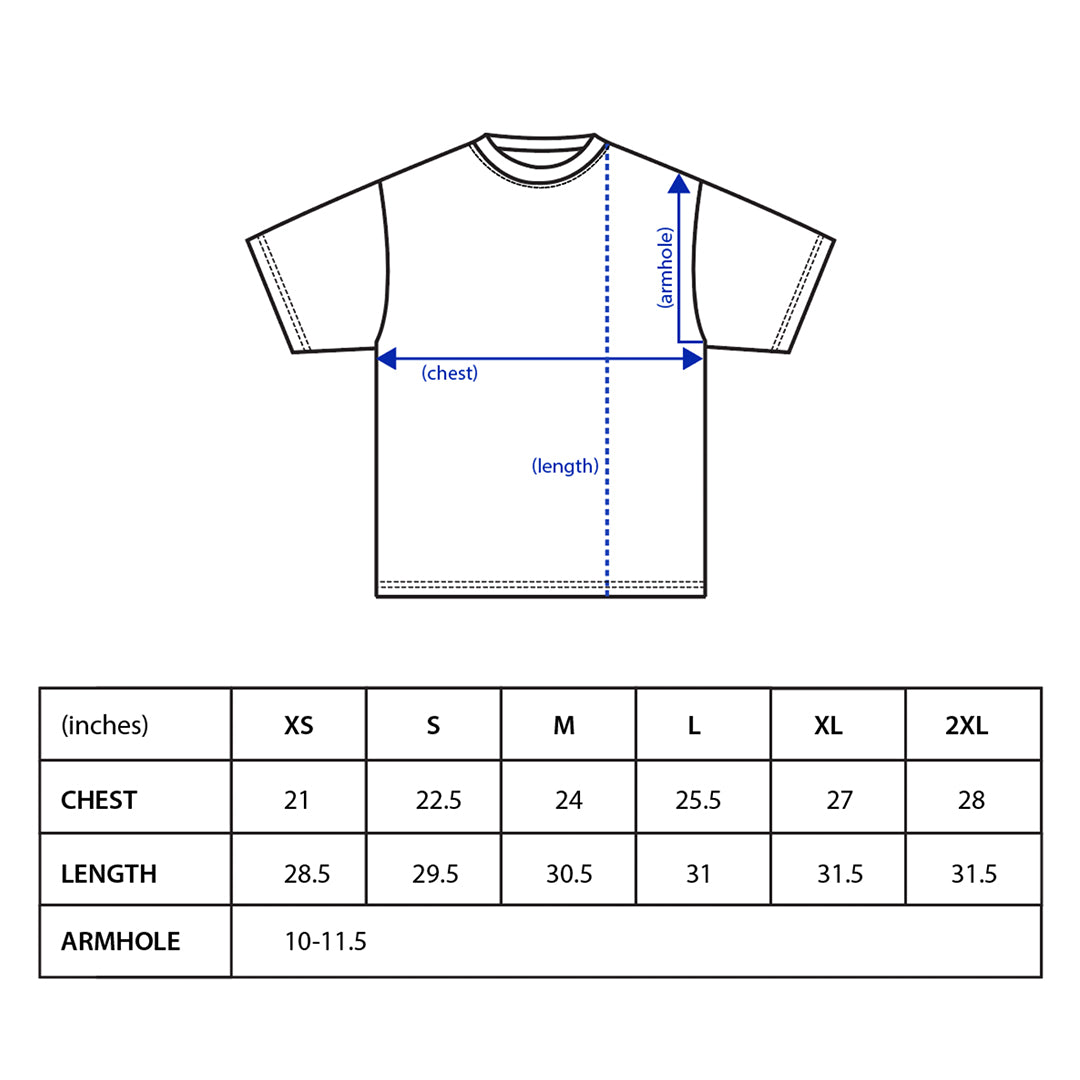 DTG Front and back print on 11.5 oz 100% pre-shrunk cotton 285 gsm. Oversized fit, size down, if you would like a more fitted look.